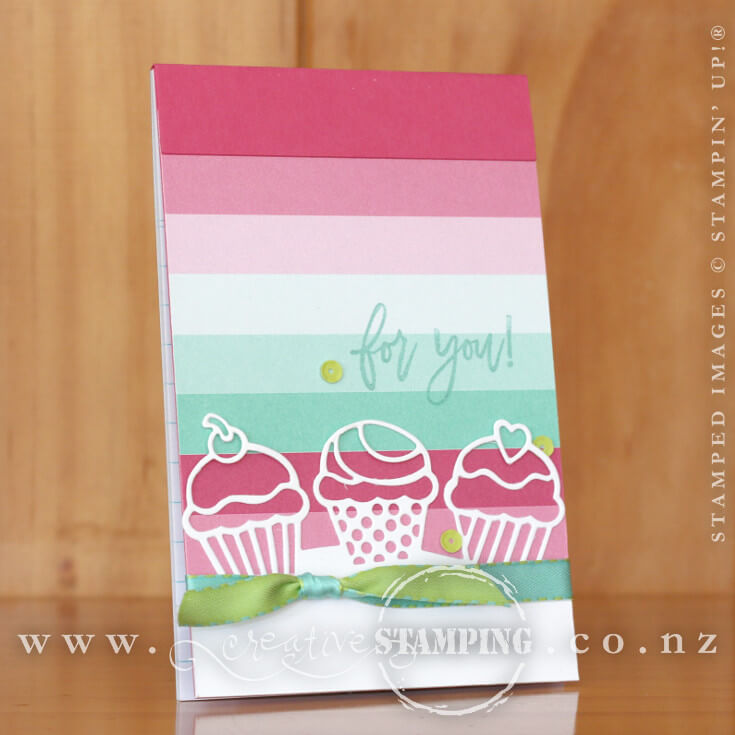 Dollar-store notepads are great for creating a personalised gift. This notepad has a lovely, girly feel to it and would look sweet on anyone's desk. The delicious colours are the striped patterned paper from the How Sweet It Is Designer Series Paper.