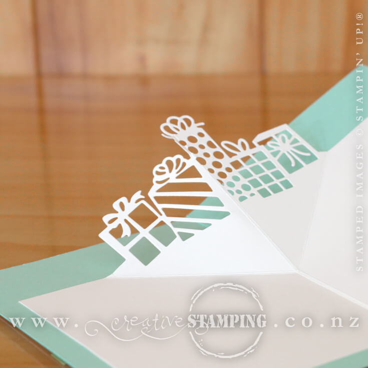I used a similar layout to the cupcake popup card to create this birthday card. However, instead of cupcakes, I used the Birthday Cheer stamp set and coordinating Detailed Birthday Edgelits Dies to create a card for my brother-in-law that features a fabulous border of birthday presents...