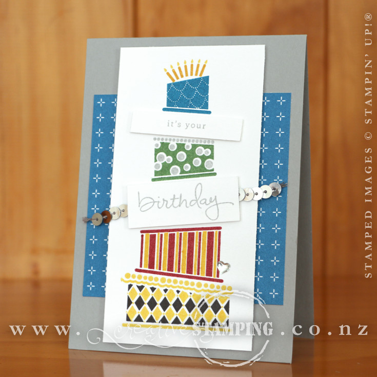 Who can guess the colour inspiration for this crazy cake birthday card? That's right, the four cake layers are each of the Hogwarts Houses! From the bottom to the top, the Hogwarts house colours are: Hufflepuff in yellow and black, Gryffindor in red and gold, Slytherin in green and silver and Ravenclaw in blue and bronze...