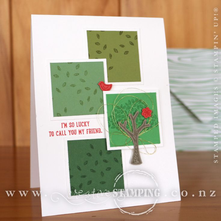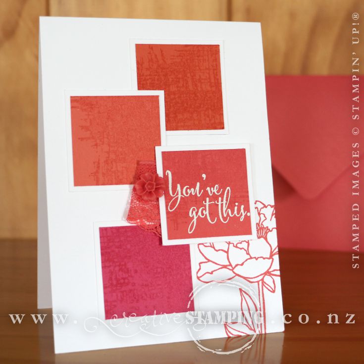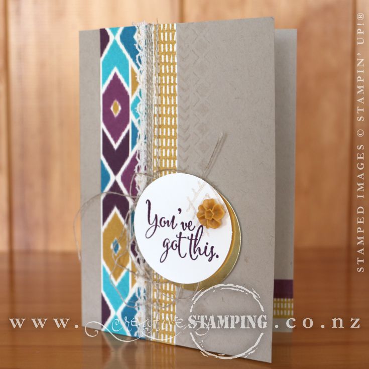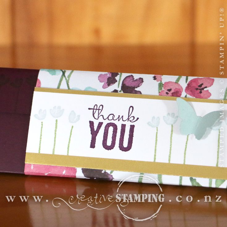The gorgeous Painted Petals stamp set from the Occasions Catalogue has not carried over into the new 2015-2016 Annual Catalogue. The Occasions Catalogue products are only available for another 5 days, until 2 June. I'm thankful that I already have it as I love this pretty two-step stamping set, especially the three tulip-like flower heads and matching stalks. Here they are stamped on a decorative belly band for a triangle gift box...