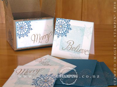 On Sunday we held our annual Hamilton Christmas Extravaganza at the Gordonton Hall, and it was a fun day full of crafting and socialising. The demonstrators start their day fairly early, setting up displays, arranging tables and preparing to teach. When we lay out the tables for our guests, we put a name tag or small gift for each person. I baked for my guests, making them biscuits pressed with the Sweet Pressed Cookie Stamps (page 161, Annual Catalogue) gift wrapped using the Season of Sweets Designer Kit (page 15, Holiday Catalogue)...