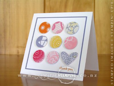 I created thank you cards for anyone who placed on order this month using retiring DSP, the 3/4" Circle Punch and the retiring Heart to Heart punch. This one I have already shown you...