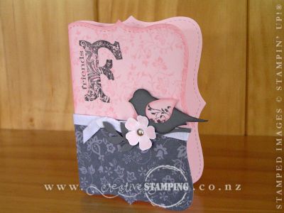 I really love using the Two-Step Bird punch from the Autumn-Winter Mini Catalogue. However, recently I have seen it used for more than a bird! Below is a photo of two cards that use the bird wing to create a tulip. The tall card on the right is a gorgeous swap that I received from my friend Bev. I was so inspired by it, I created the easel card on the left - keeping the tulip and embossed diamond matting and changing up the colours and style.