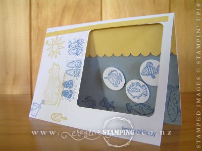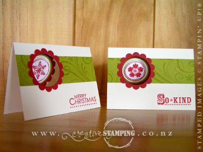 Creating an opening in your card so you can see a stamped image on the inside of your card is a great way to add dimension to your creations. Here are two very similar cards that use this technique. The first is using stamps from Season of Joy to create a little Christmas card that would be really great to add to a gift. The scallop on the inside of the card is the same as the ones we made at the October workshop for the Christmas voucher card. The second card is practically the same, but uses stamps from Priceless.