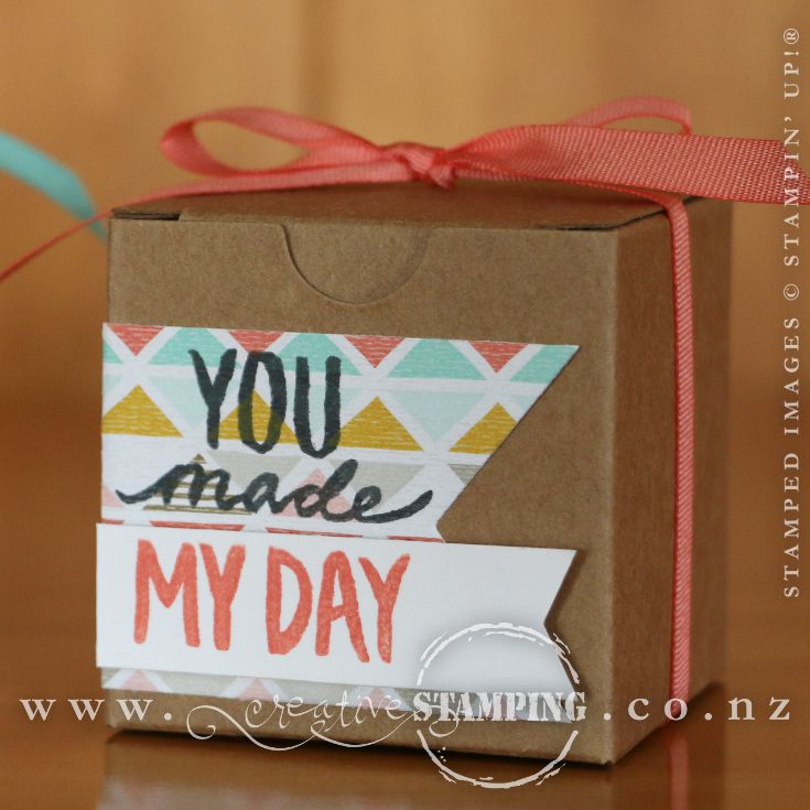 These Tiny Treat Boxes, on page 5 of the Occasions Catalogue, are so cute but quite understated - you could easily miss them amongst all the other yummy products on the same page. They are easily filled with mini chocolates or other tiny treats and then you can add your own personal flourish. Great for Easter!