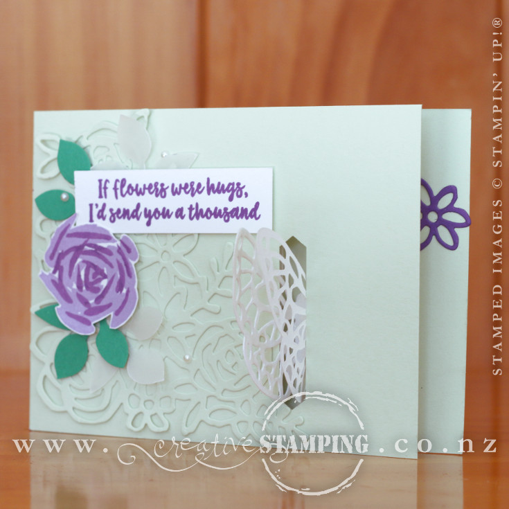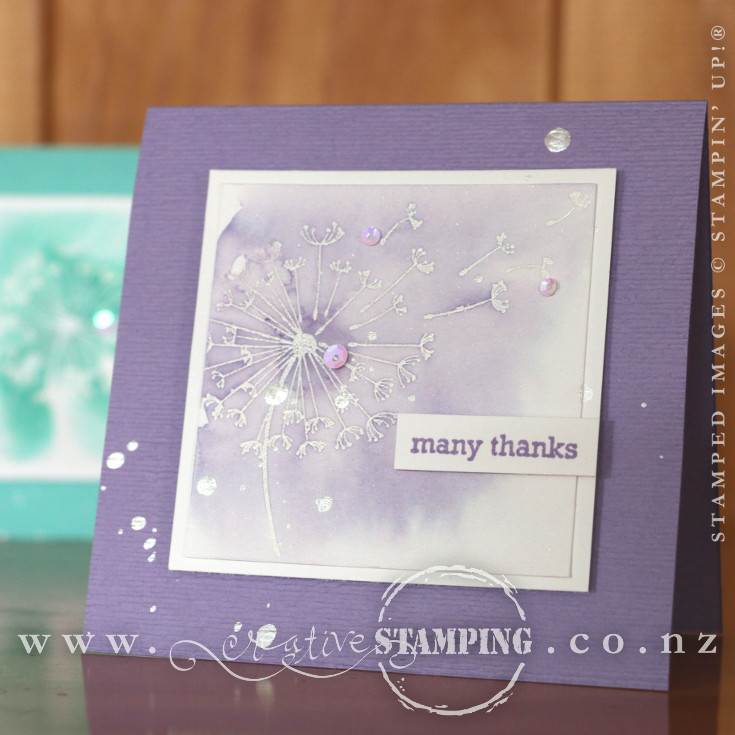 At last month's workshops we created this butterfly sympathy card that features the gorgeous Abstract Impressions stamp set and coordinating Springtime Impressions Thinlits Dies, and includes some fabulous new colours: Soft Sea Foam, Gorgeous Grape, Highland Heather, and Call Me Clover...