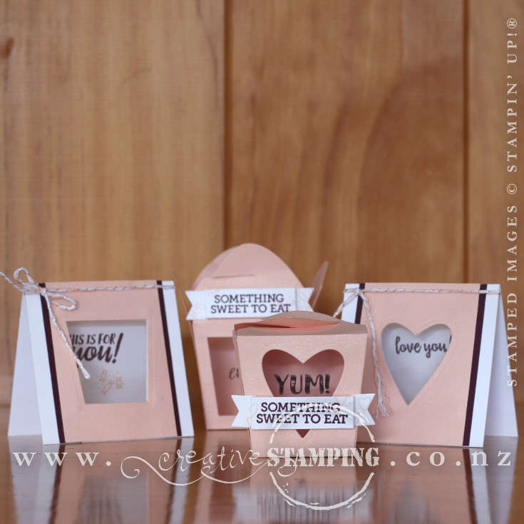 In New Zealand, we generally don't celebrate the traditional US holidays of Halloween or Thanksgiving. However, I challenge you to take a look at these sections in the new Holiday Catalogue as there are some awesome products in there that can be used for other holidays and all year-round. Take the sweet Takeout Thinlits Dies and coordinating Takeout Treats stamp set, which would make fabulous favours for weddings or for dressing your Christmas table.