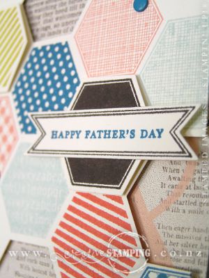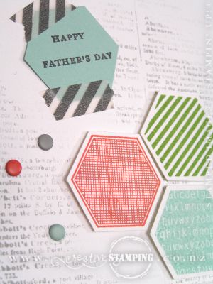Have you made your Father's Day card for Sunday? I used the Six-Sided Sampler stamp set, which has strong geometric images, to make one of my Father's Day cards. When you make this masculine hexagon card you need to get intimate with your Stamp-a-ma-jig...