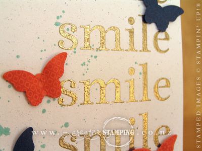 Here's another variation of the butterfly "Smile" card, made using the Papillion Potpourri stamp set and coordinating Bitty Butterfly punch...