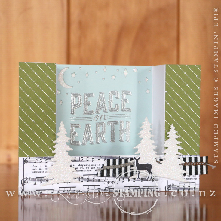 At the Creative Stamping Workshops this month, we created Bridge-Fold Cards (otherwise known as U-Fold Cards) using the fabulous Carols of Christmas stamp set and coordinating Card Front Builder Thinlits to create a lovely, peaceful diorama scene...